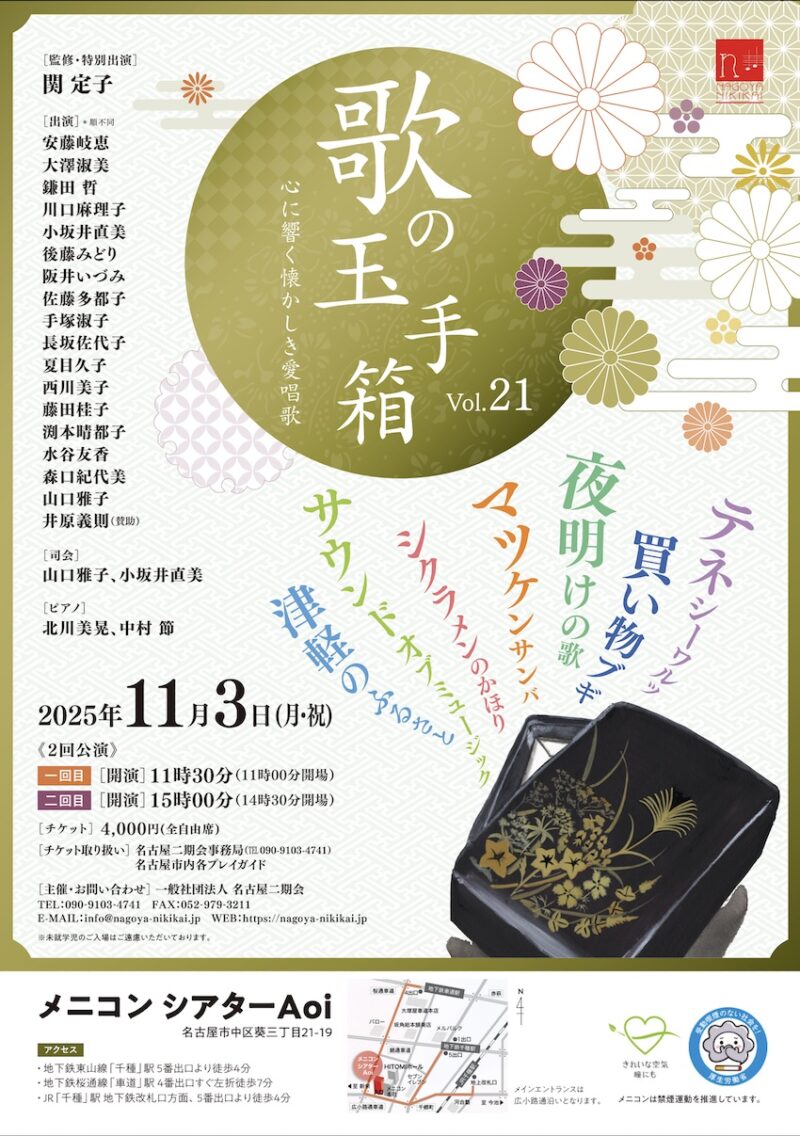 ・・・終了  ソプラノの加藤恵利子さんが難聴の方のためのコンサートを企画されて、情熱的に継続されています。一部は難聴や音波の進み方などのレクチャーでした、その第二部のコンサートに出演させていただきました。声の調子もよく、宗次ホールの響きにも助けられてとても気持ちよく歌えました。ちょっとした歌詞の間違いは字幕が出るのでしっかりバレてしまいましたが・・。加藤恵利子さんとも何度も共演していたので上手く息が合ったコンサートになったと思います。お客様も皆さん喜んでいただけたようでとても嬉しかったです。